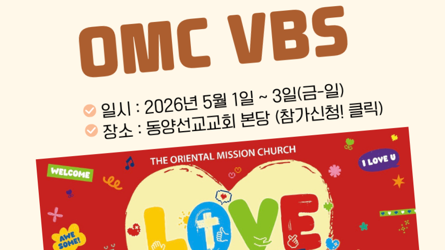 2026 동양선교교회 표어 “사람에게 진심, 하나님께 전심”[예배안내]1부: 오전 7시 30분, 본당2부: 오전 9시 30분, 본당3부: 오전 11시 30분, 본당4부(청년부): 오후 1시 30분, 비전센터 온라인 예배 바로가기 동양선교교회에 오신 새가족을 환영합니다
