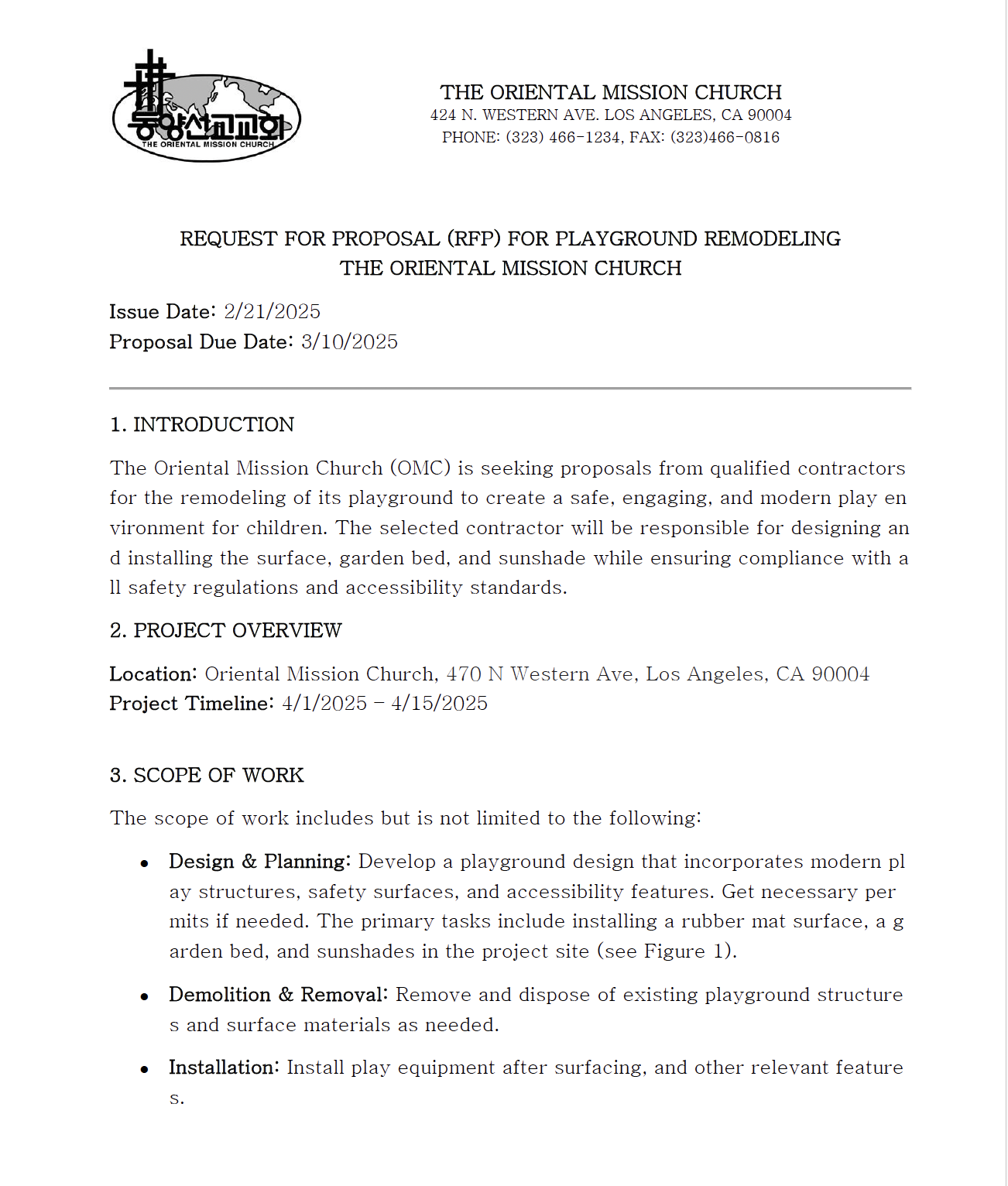 어린이놀이터 리모델링 공사를 위한 입찰 공고