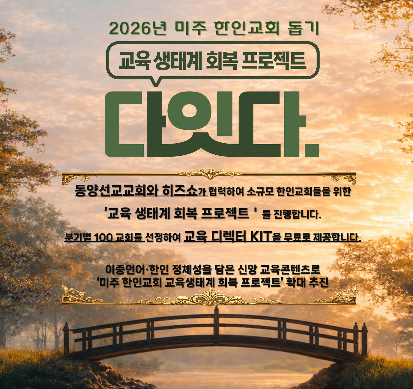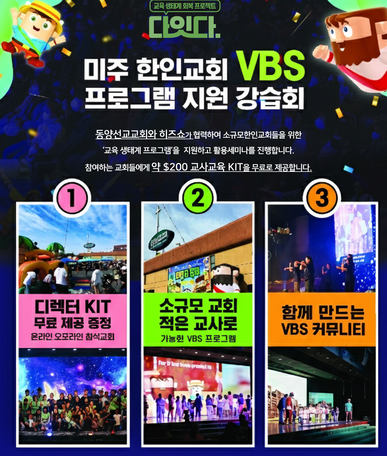 남가주 한인 교회의 교육을 선도하며 56년 간에 걸쳐 헌신해 온 동양선교교회(담임목사 김지훈)가 팬데믹 이후 인적, 재정적인 어려움을 겪고 있는 한인 교회학교를 돕기 위해 히즈쇼(대표 백종호)와 협력하여 특별한 지원 프로젝트를 진행합니다.
