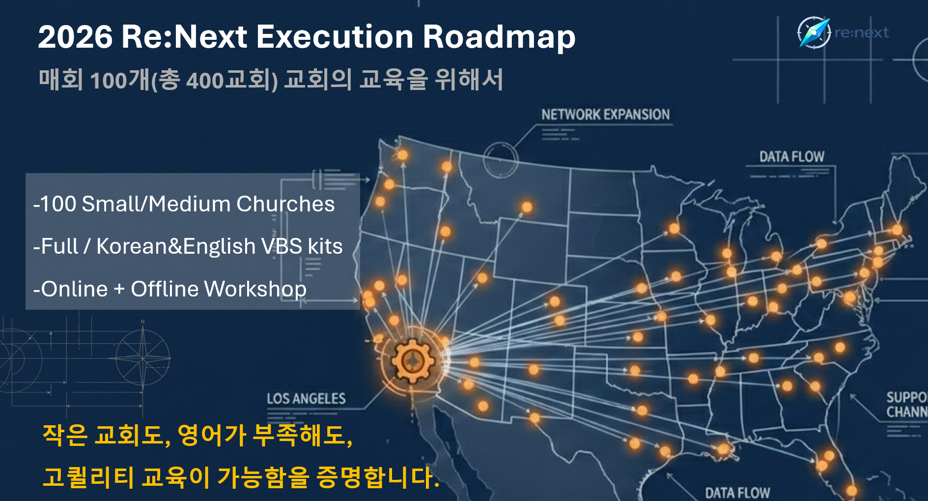 Re:Next ‘교육 생태계 회복’을 소개하고 1년간 네트워크를 만들 수 있는 첫번째 오프라인 모임입니다. 교사 교육 프로그램과 구성을 살펴보고 활용법을 제시합니다. 더불어 한인교회 교육 생태계의 어려움과 솔루션을 함께 고민하고 서로의 사역을 모니터링하고 격려하는 시간입니다. 더불어 한국, 미국 서로 간의 사역과 네트워크를 확장, 연결하는 장이 되길 기대합니다.
